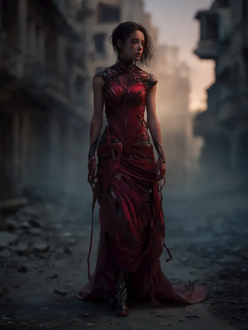 Now it’s quieter. The dress hums when I step. Threads slither. Steel plates shift to guard my ribs. Every move is a promise it makes for me. Every breath it takes. Because I don’t get to breathe on my own anymore.